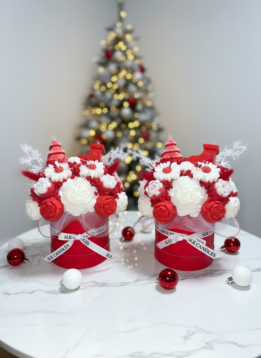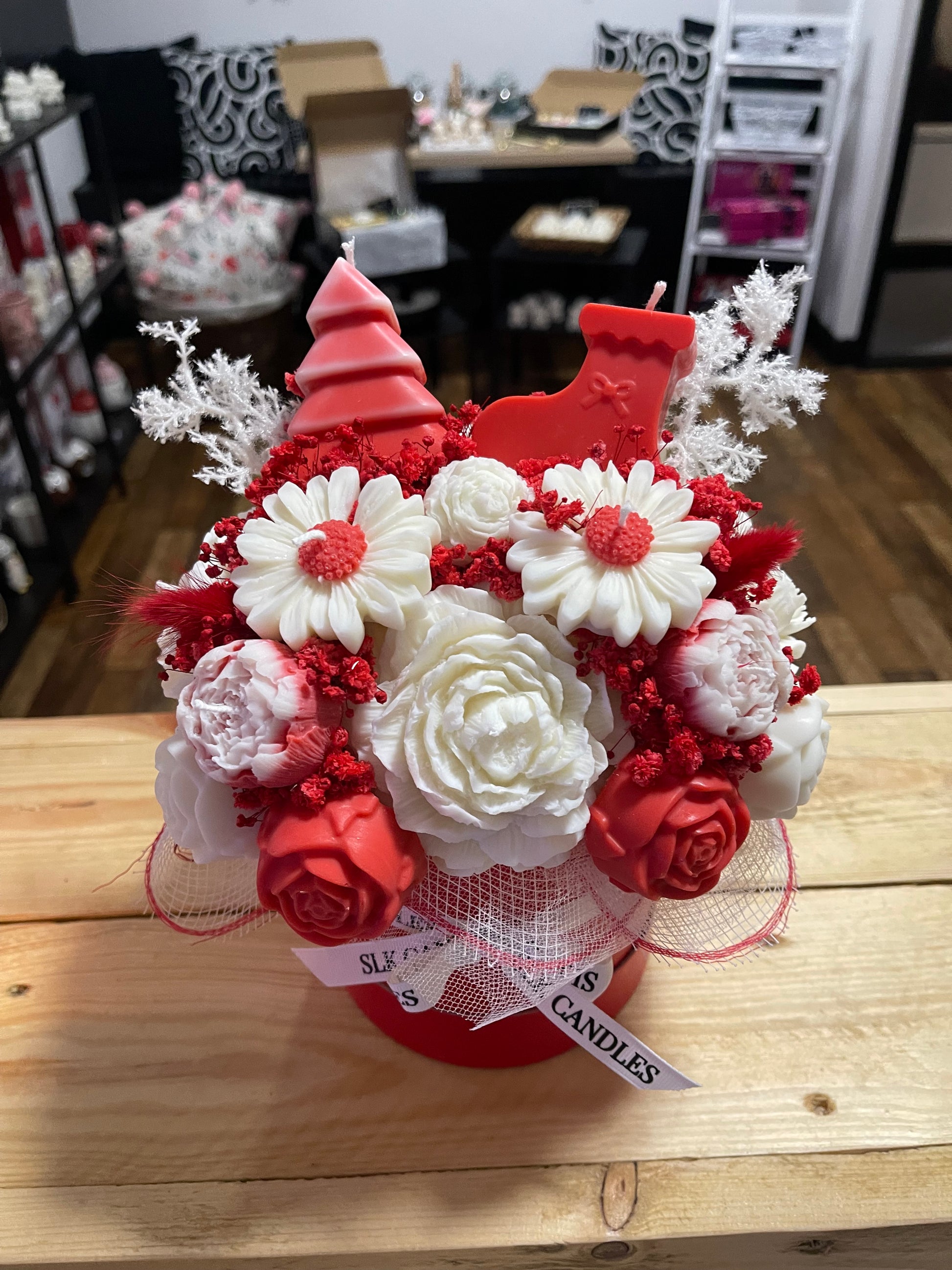 Introducing our Limited Edition Handmade Christmas Candle Bouquet, a perfect fusion of Christmas, elegance and charm. Comprised of a ray of Candles in this stunning arrangement which is meticulously crafted and arranged with love and care. The vibrant colours chosen for this bouquet exude sophistication and grace.