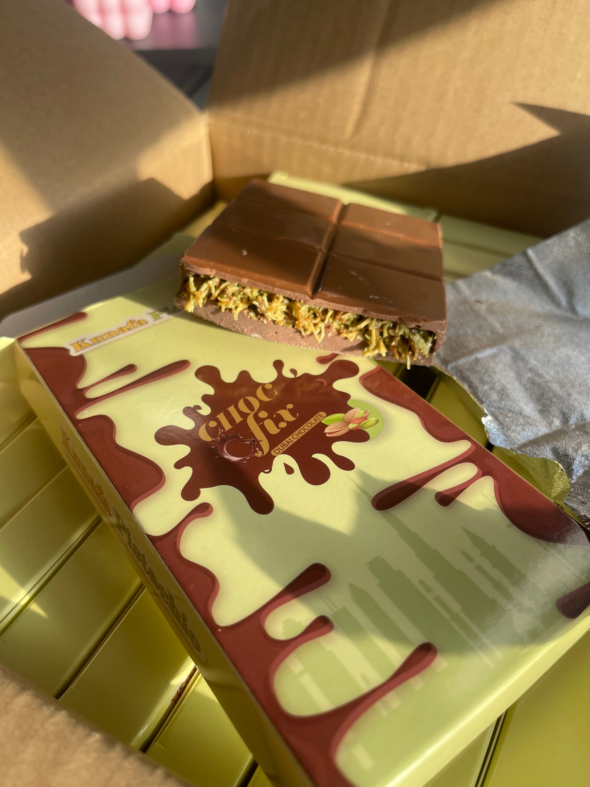 - Flavour Fusion: Combines the creamy nuttiness of pistachio with the sweetness of kunafe, creating a unique and luxurious treat with a rich and decadent melt in your mouth artisinal chocolate.